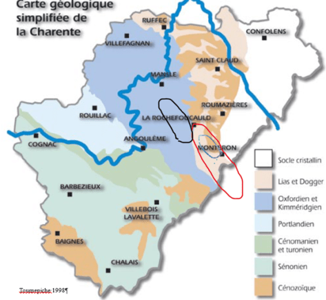 Le karst de La Rochefoucauld se localise sur la partie est du département de la Charente c’est-à-dire dans les terrains jurassiques.